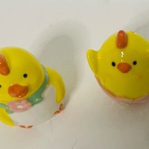 Charming ceramic chicks with vibrant yellow and pink accents. Perfect for adding a playful touch to your kitchen decor.
