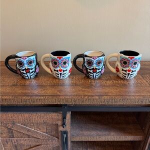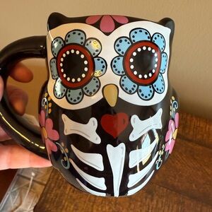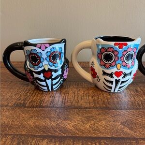 CrackerBarrel Exclusive Stoneware Dias de las Muertos/ Day Of The Dead Owl Mugs