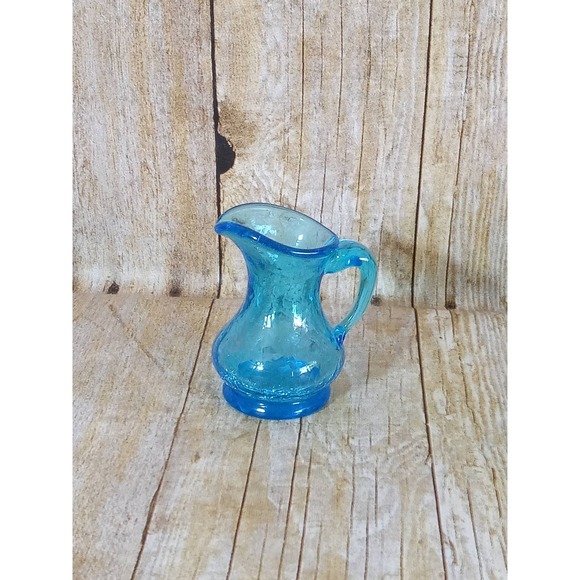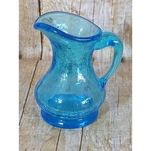 Crackle Glass Bud Vase Pitcher Blue Miniature Succulent Air Plants Planter 3.5" Very clean NO chips