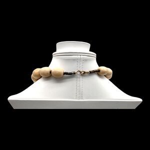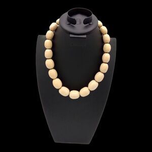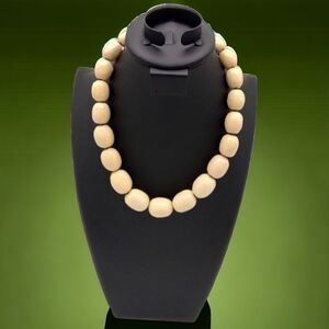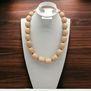 Crackle Glazed Chunky Graduated Cream Beaded Vintage 10-inch Statement Necklace