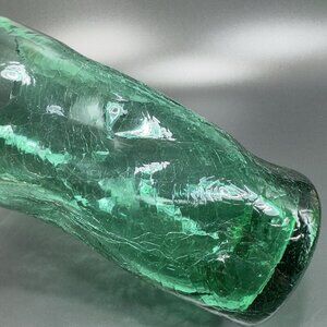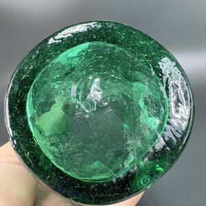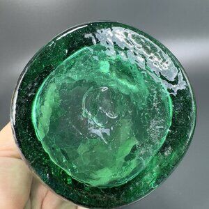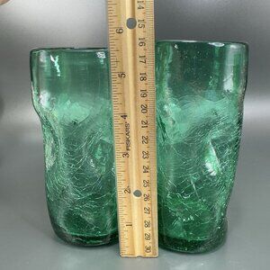 Crackle Green Glass Tumbler Pinched Dimpled Tumblers Cups Glasses Set 2 Vintage
