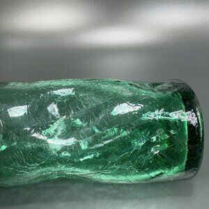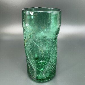 Crackle Green Glass Tumbler Pinched Dimpled Tumblers Cups Glasses Vintage Set 2