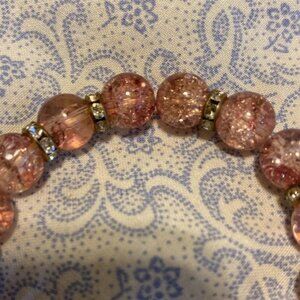 Crackled pink beads and clear rhinestone bracelet. Stretchy.