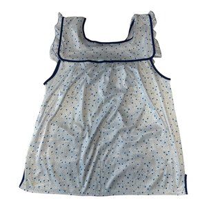 Pullover -Stretchy -Front pockets -Embroidered -Ruffle details -White-blue Print
