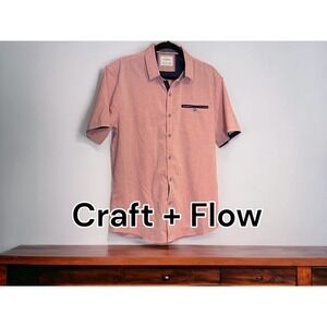 Craft + Flow Button Front Shirt Men's Large Pink Blue Accents Short Sleeve