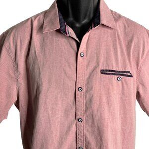 Craft Flow Button Up Short Sleeve Shirt L Pink Pocket Point Collar Contrast Trim