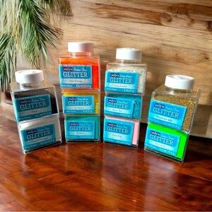 • 7 Extra Fine Glitter Jars (2.5 oz each): Neon Orange, Neon Green, Crystal Diamond, Champagne Gold, Caribbean, Cameo Pink, and Onyx.