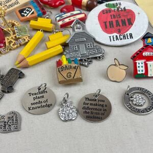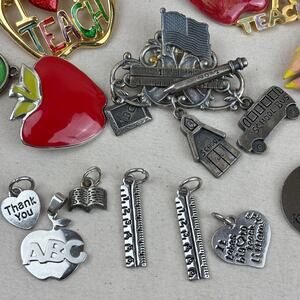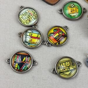 Craft Jewelry - Charms Pins Button Covers - Teacher School Library Apple Book