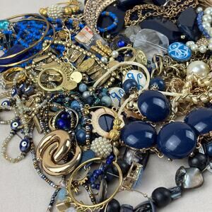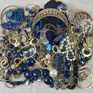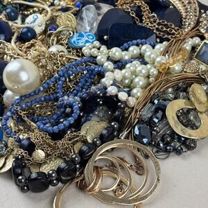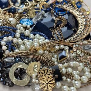 Craft Jewelry Lot - 2 lbs Navy Gold Tone Chunky Stones Rhinestones Faux Pearls