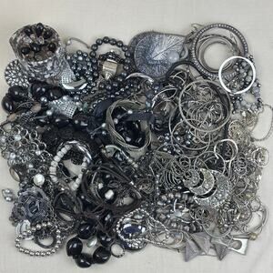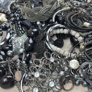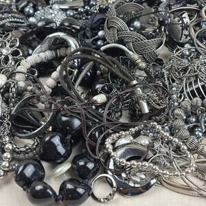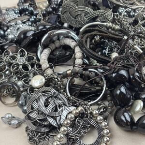 Craft Jewelry Lot - 3+lb Grey Black Silver Tone Beads Bangles Hoops RIngs & More