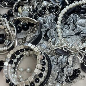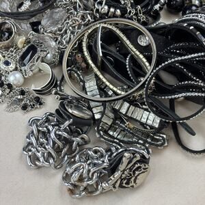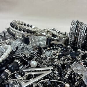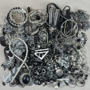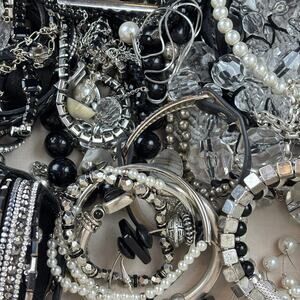 Craft Jewelry Lot - 4 lb Black White Silver Tone - Faux Pearls Rhinestones Rings