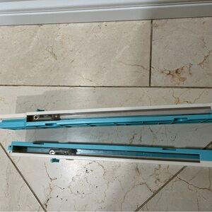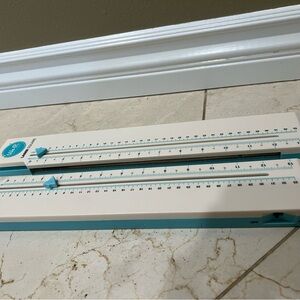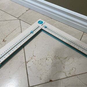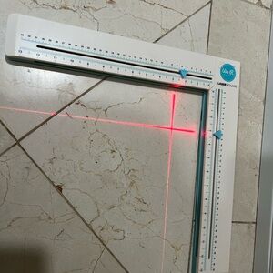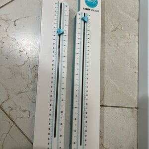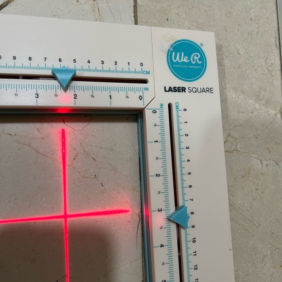 We R Memory Keepers Laser Square- Cut material precisely with this laser square. Cut cardstock, vinyl and more up to 12"x 12". Has inch and metric measurements, breaks down for easy storage. Laser square can be adjusted to a 90 degree angle or placed together in a straight line.