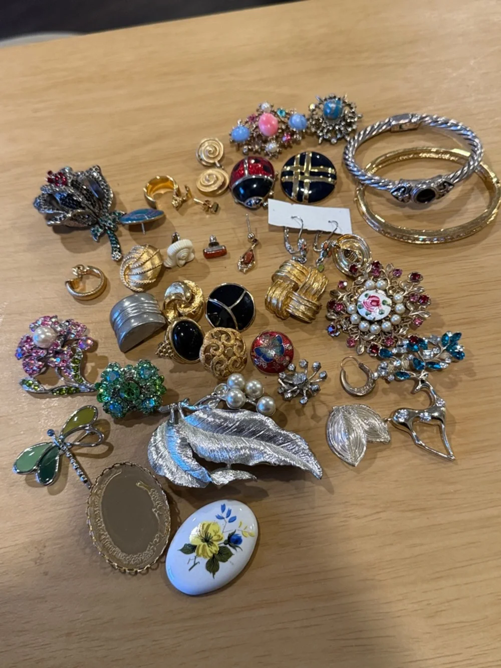Some signed and unsigned pieces Great for someone who repairs jewelry or crafts Single earrings As is J