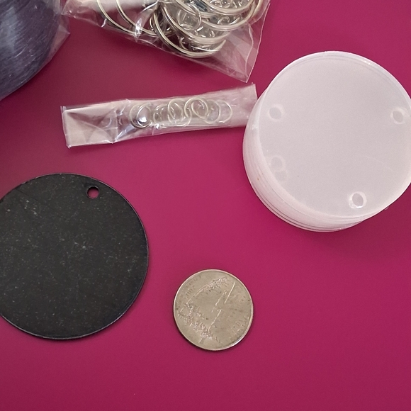 9 Clear Keychains and 58 Black Keychains...along with the jump rings and key holders.