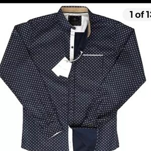 Questions? Leave a comment below! M - Geo Print Blue Catcher Dot Dress Shirt CRAFT + FLOW MSRP $70 NWT