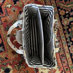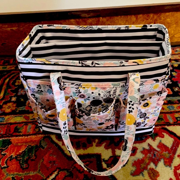 Cute craft bag. 13”x10”x6” with two pockets inside and three pockets on the side. Almost new. Got it for storing my supplies and my hobby outgrew it.