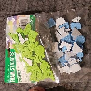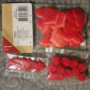Really great, new craft bundle! It includes Jot 2024 calendar, pack of small blue & green foam sticker back letters, pack of red felt sticker back letters, small and medium red pom poms, a pack of 2 white pom poms, silver and red satin hearts, silver and red confetti lips, red w/white quarter size hearts, 40 pieces foam sticker back Easter eggs and craft feathers! Nice variety! All new!