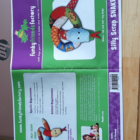 funky friends factory Silly Scrap Snake pattern, never used, use scraps of material to make an adorable 60inch toy snake