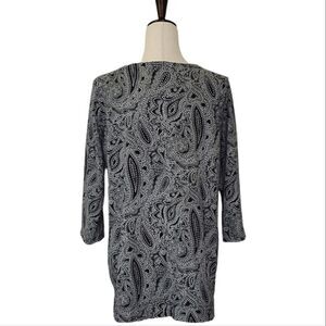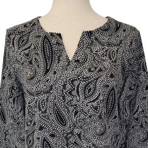 Craft & Barrow Navy Blue Paisley Split Neck 3/4 Sleeve Stretch Top Size L NWOT
