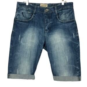 Crafted Men’s Denim Shorts Size 32 Distressed Button Fly Cuffed Pockets Walking