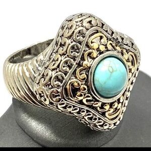Crafted by Overlay Two-Tone bohemian Turquoise Ring size 7 women’s ring