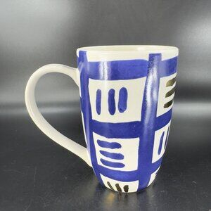 Crafted by Wainwright Pompeii White Blue Gold Tall Coffee Mug Cup Ceramic Mug