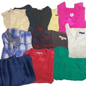 Crafter Cutter Silk Lot 7 Blouses, 4 Dresses, 1 Pants Flawed Imperfect Upcycle. Total weight is 4 lbs. 4 oz.