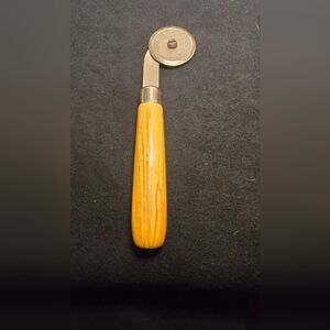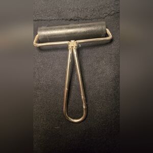 Roller: The item on the right is a brayer or roller, often used in printing or for smoothing materials in crafts.