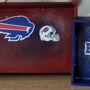 I am selling a variety of serving trays, door wreaths, paintings, Bills crafts and more. Trays range from $20 to $50, Sets are $35-$45, small wreaths are $16