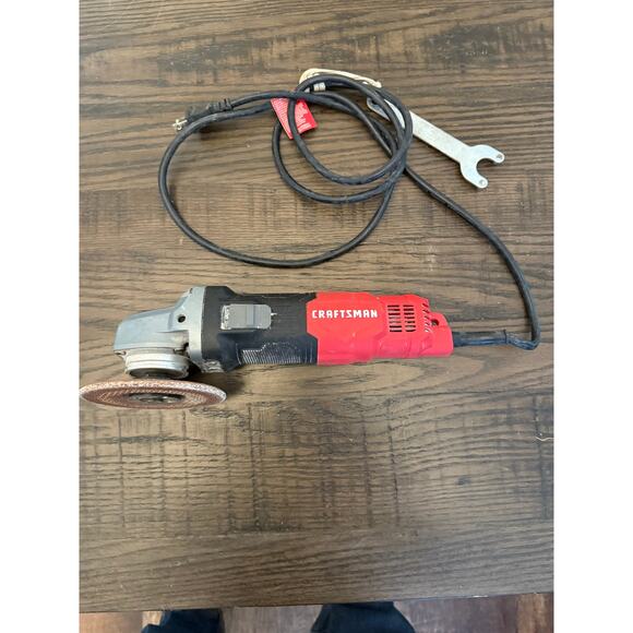 The Craftsman CMEG100 4½-inch angle grinder is a powerful corded tool ideal for grinding, cutting, and polishing metal, masonry, and other materials. Designed for durability and ease of use, it features a comfortable grip and reliable performance for DIY projects or professional tasks. The grinder is in good used condition and fully functional. Great value!!