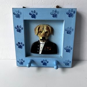 Crafty Golden Retriever Wall Hanging with Hooks Blue PawPrints Resin 3D Dog