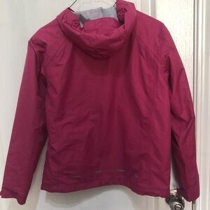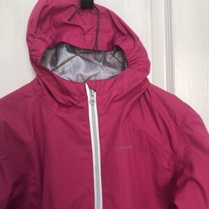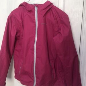 Craghoppers Aquadry jacket. Good Preowned condition. Two zipper pockets in front. Pink with grey trim. Size says age 9-10 year old.