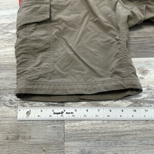 Craghoppers Nosilife Insect Shield Olive Green Men 32 Outdoor Hiking Cargo Shorts Casual multiple pockets polyamide polyester heavyweight hiking camping outdoorsy utility earth toned bug repellant shorts, very small faint stain at top of pocket