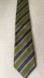 This elegant tie features a sophisticated diagonal stripe pattern in green and black, accented with subtle gold lines. Gently worn, excellent condition.
