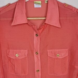 Craig Taylor Piper Silk Blend Long Sleeve Blouse Sundrenched Orange Size Medium