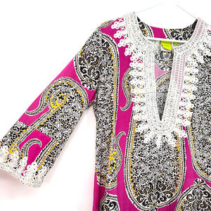Craig Taylor size small Miss St. Barths Lily fit paisley print pink black yellow