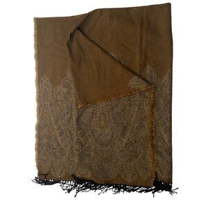 Craigmill 100% Pure New Wool Paisley Fringe tapestry throw blanket neutral brown