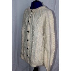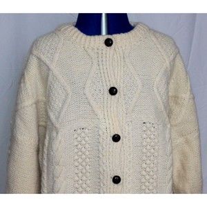 Crana Handknits Made In Ireland 100% Pure New Wool Cream Cable Knit Cardigan M