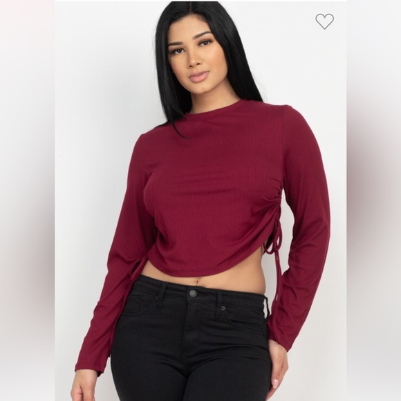 Cranberry Adjustable Ribbed Ruch Top