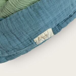 Crane Toddler 2T-3T Swim Coverup Hooded Poncho Green Blue 100% Cotton Muslin