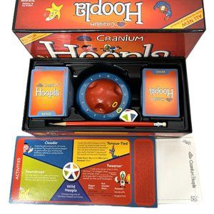 Includes more than 280 Hoopla cards, timer, a 10-sided die, Cranium pad, and pencil