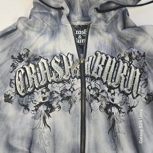 Crash & Burn Affliction Gothic Hooded Jacket Tie-Dye Full Zip Streetwear Med