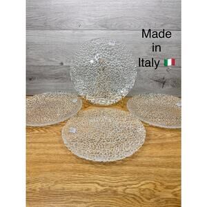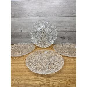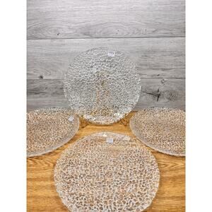 Crate And Barrel Riviera Clear Glass Textured Pebbled 10.75” Dinner Plates~4 Pc