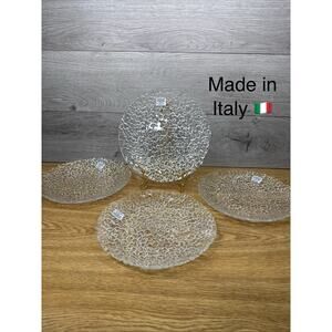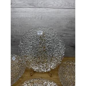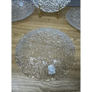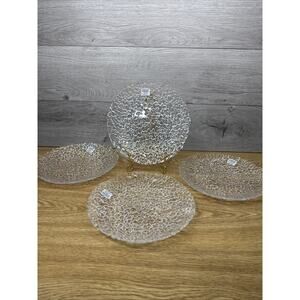 Crate And Barrel Riviera Clear Glass Textured Pebbled 8.5” Salad Plates ~4 Pc