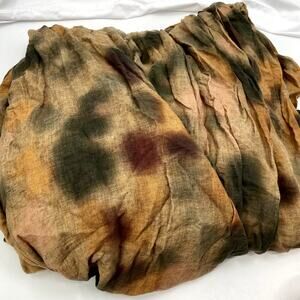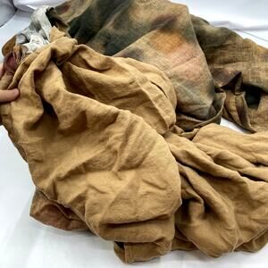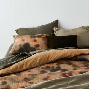 Crate & Barrel Aire Natural EUROPEAN FLAX ™-Certified Oversized Floral Ocher Tan/Burnt Green Duvet Cover