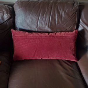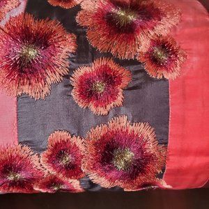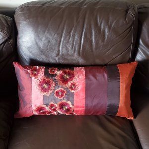 This lumbar style accent pillow features stripes of satin and velvet fabric with a beautifully embroidered floral design. Asian inspired. Zipper on back so pillow insert can be removed. Has a few indented lines on velvet side from storage (see pic 6). Lines might steam out. Otherwise in great condition.
