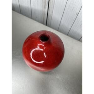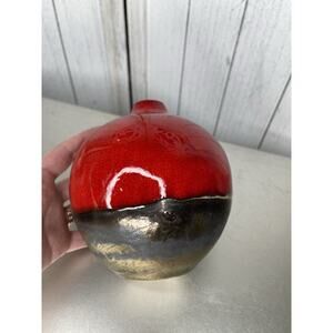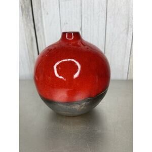 Crate & Barrel Ceramic Two Tone Vase Vibrant Red & Bronze Sphere