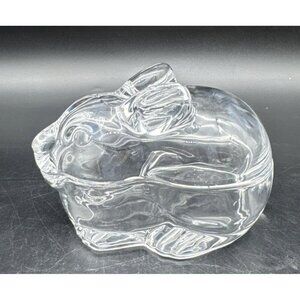 Crate & Barrel Clear Glass Covered Bunny Rabbit Candy Nuts Trinket Dish