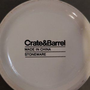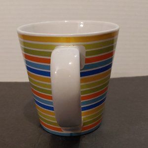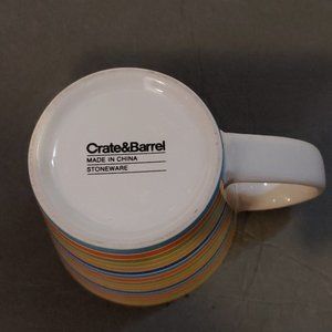 Crate & Barrel Coffee Mug Cup Orange Yellow Green Blue Stripes 12 Ounce Very Good Condition. Nice and cheerful colors with white stripes between them!