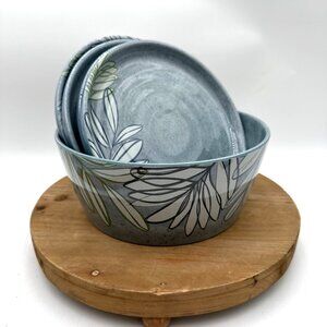 Crate & Barrel Cruz Botanical Melamine Serving Bowl And 4 plates